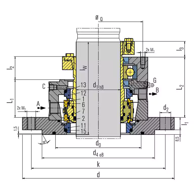 pressure variations or pressure reversal. - Operation is possible with buffer fluid (p1max = 6 bar (87 PSI)) or pressurized with barrier fluid as double seal
